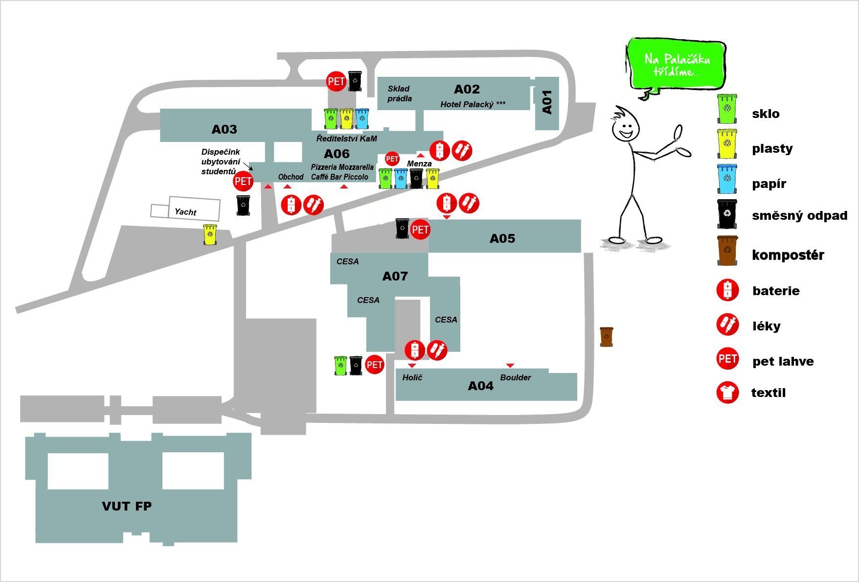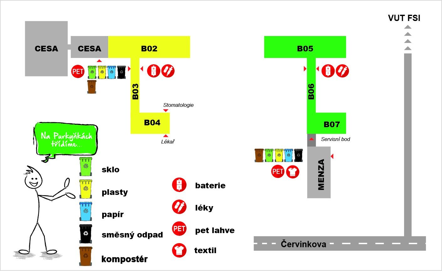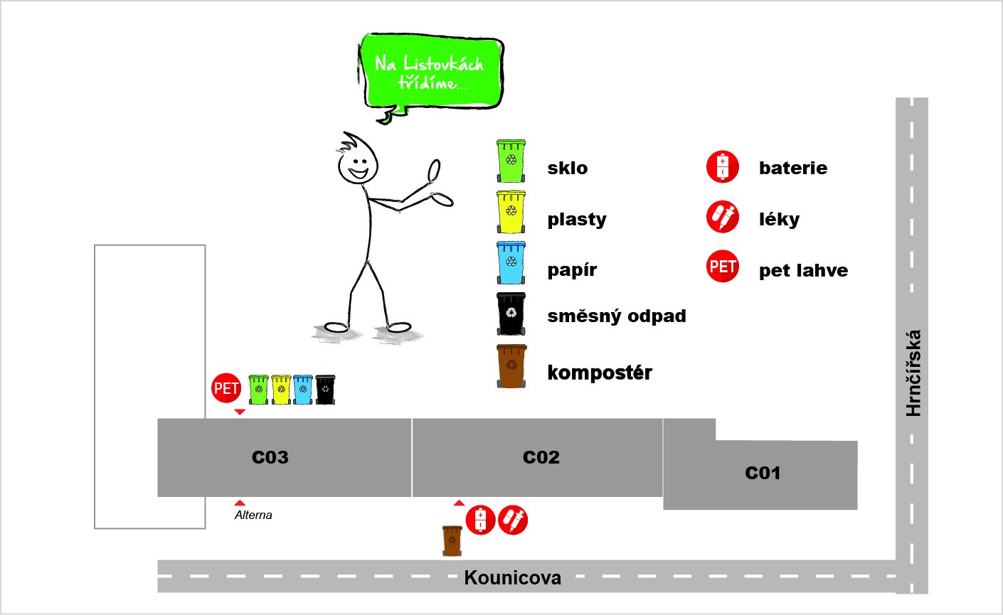 Ve všech areálech kolejí VUT naleznete kompostéry pro bioodpad (konkrétní umístění naleznete v sekci „Kde třídit“.(mapy s rozmístěním kontejnerů)